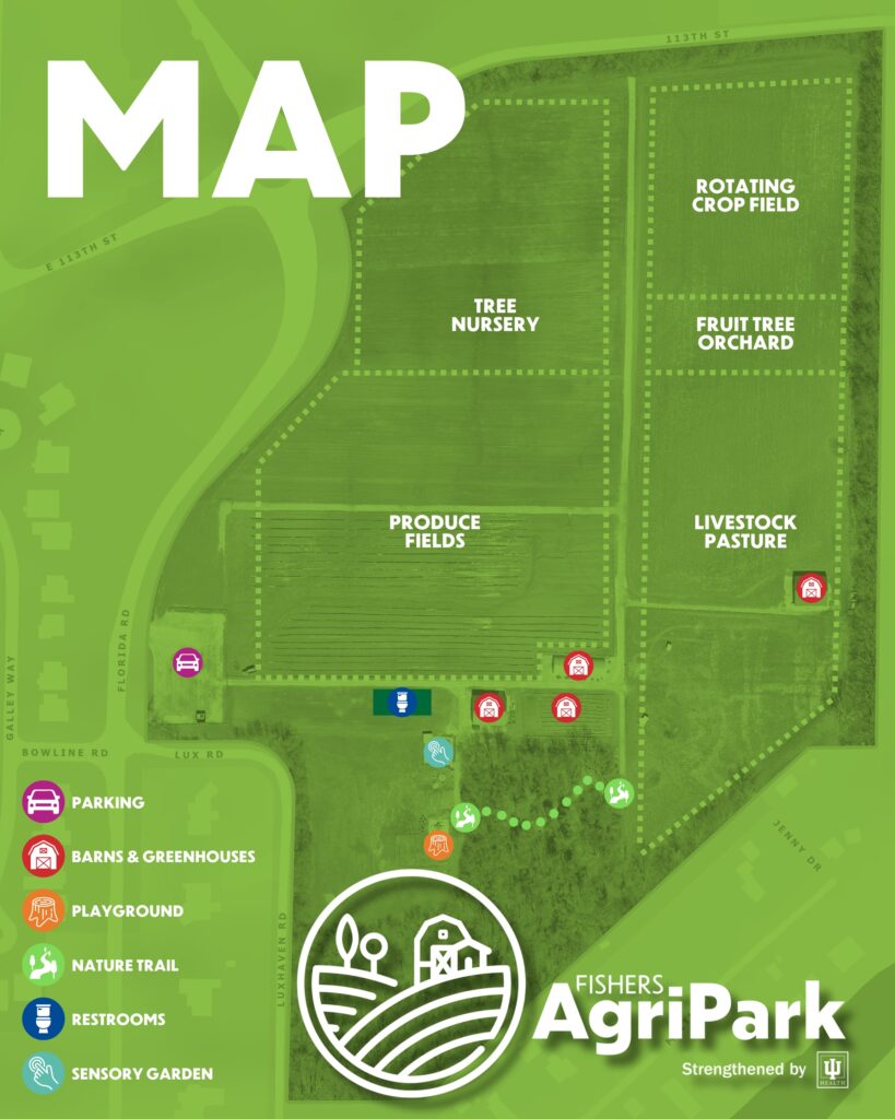 The Fishers AgriPark, Strengthened by IU Health, is open year-round! Stay tuned for seasonal hourly changes.